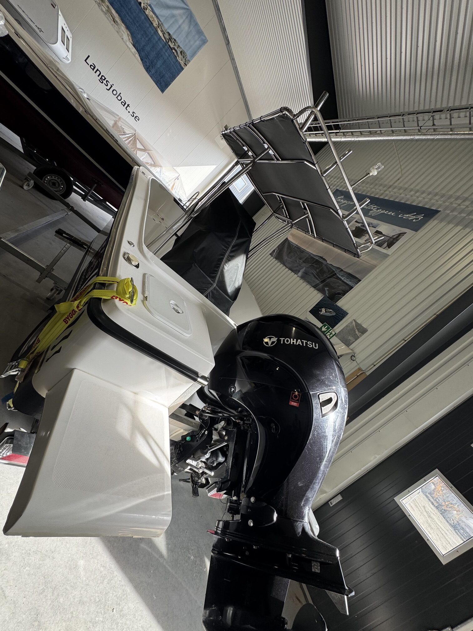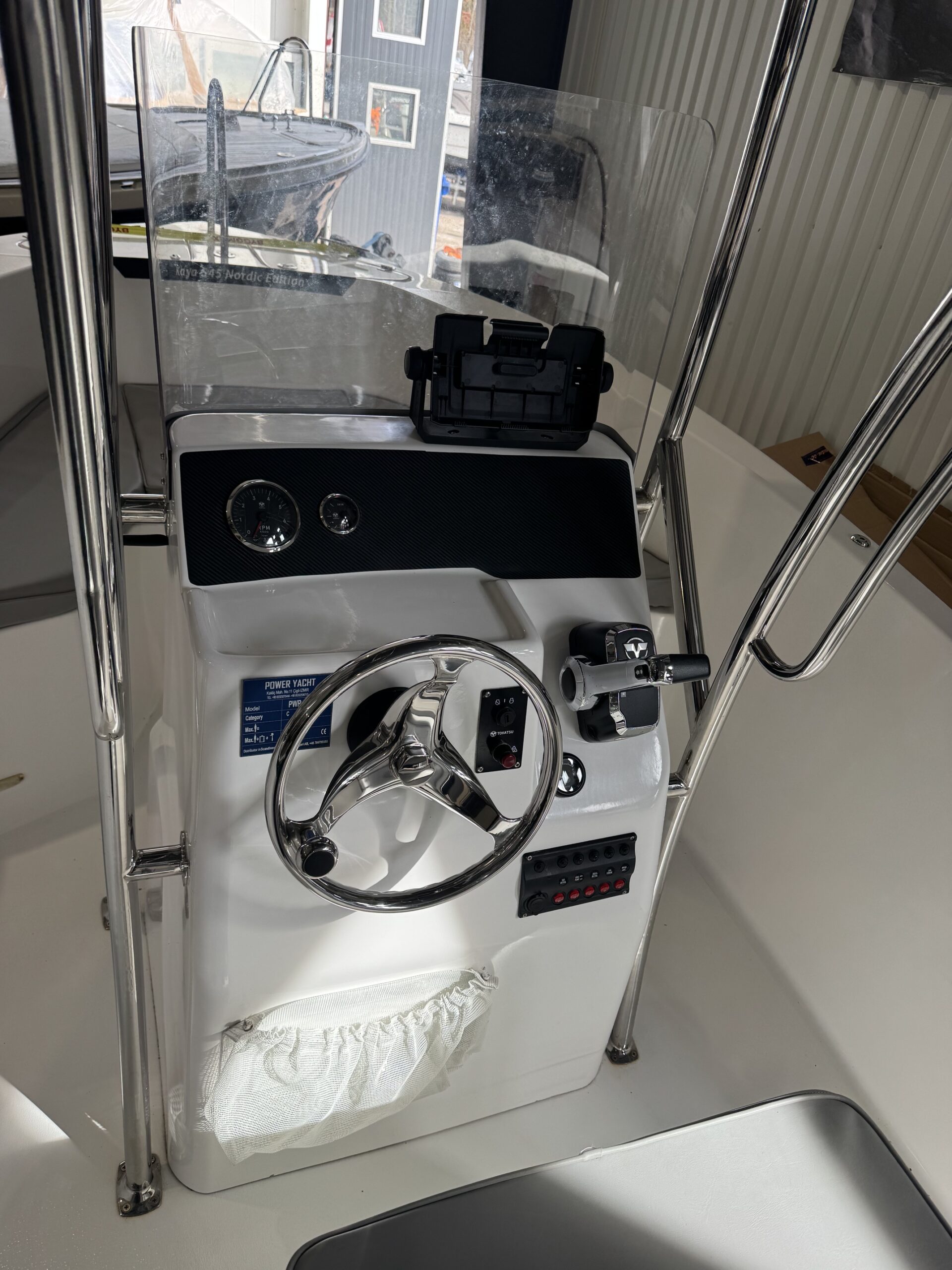– 4 RF pollare– Teleskopisk badstege– 2st infällda spöhållare– 4st spöhållare på T-top– 4x interiörbelysning– 60 liters bränsletank i rostfritt– Topplanterna med flaggstång– Vändbart ryggstöd på soffa– 2st uppfällbara sittdynor i akter– T-top i rostfritt med tak i sunbrella tyg– Sittdynor på soffa förut och förarplats– Fisketank med cirkulationspump (Tsunami)– Badplattformar akter – Överdragskapell till styrkonsoll– Garmin Echomap UHD 92sv med GT54 ekolodsgivare