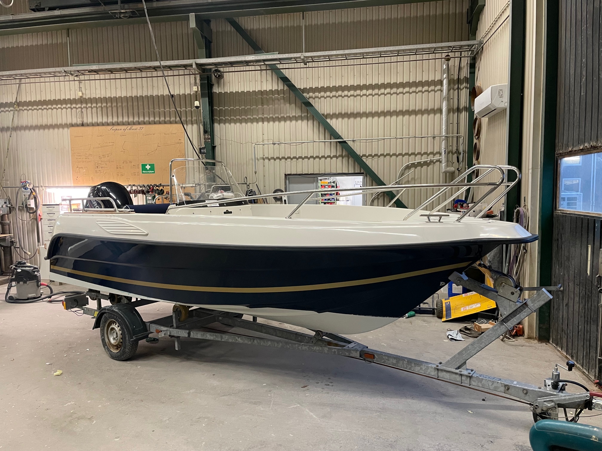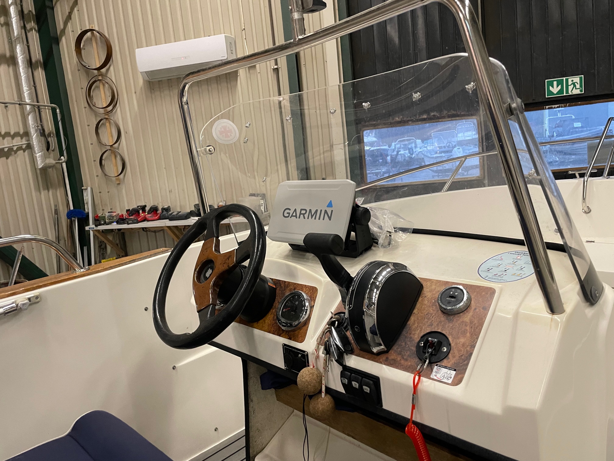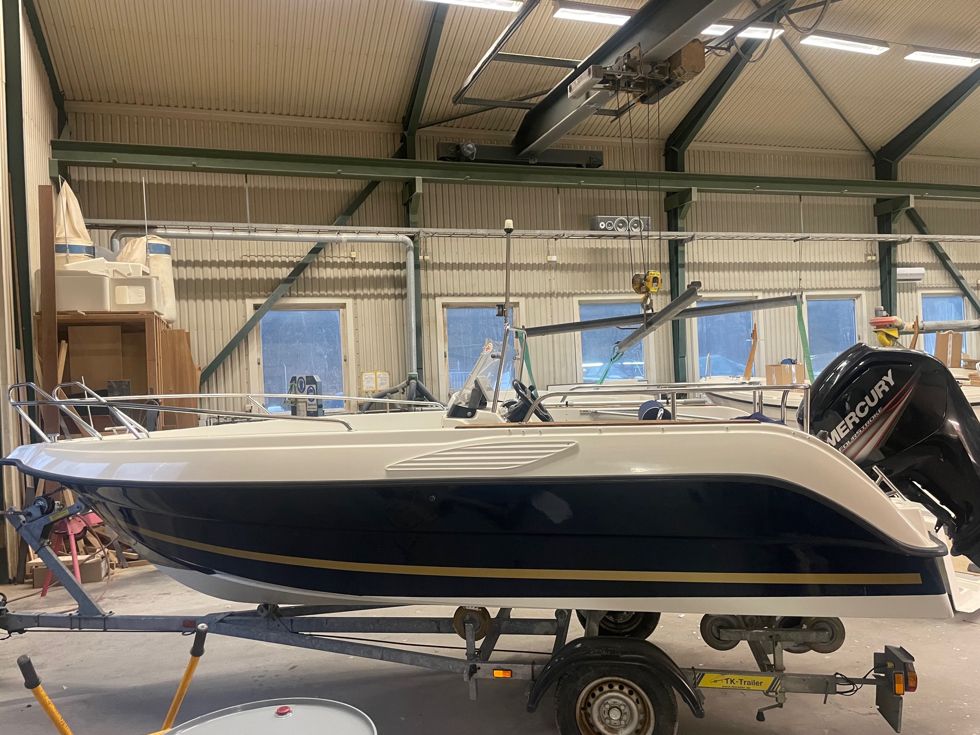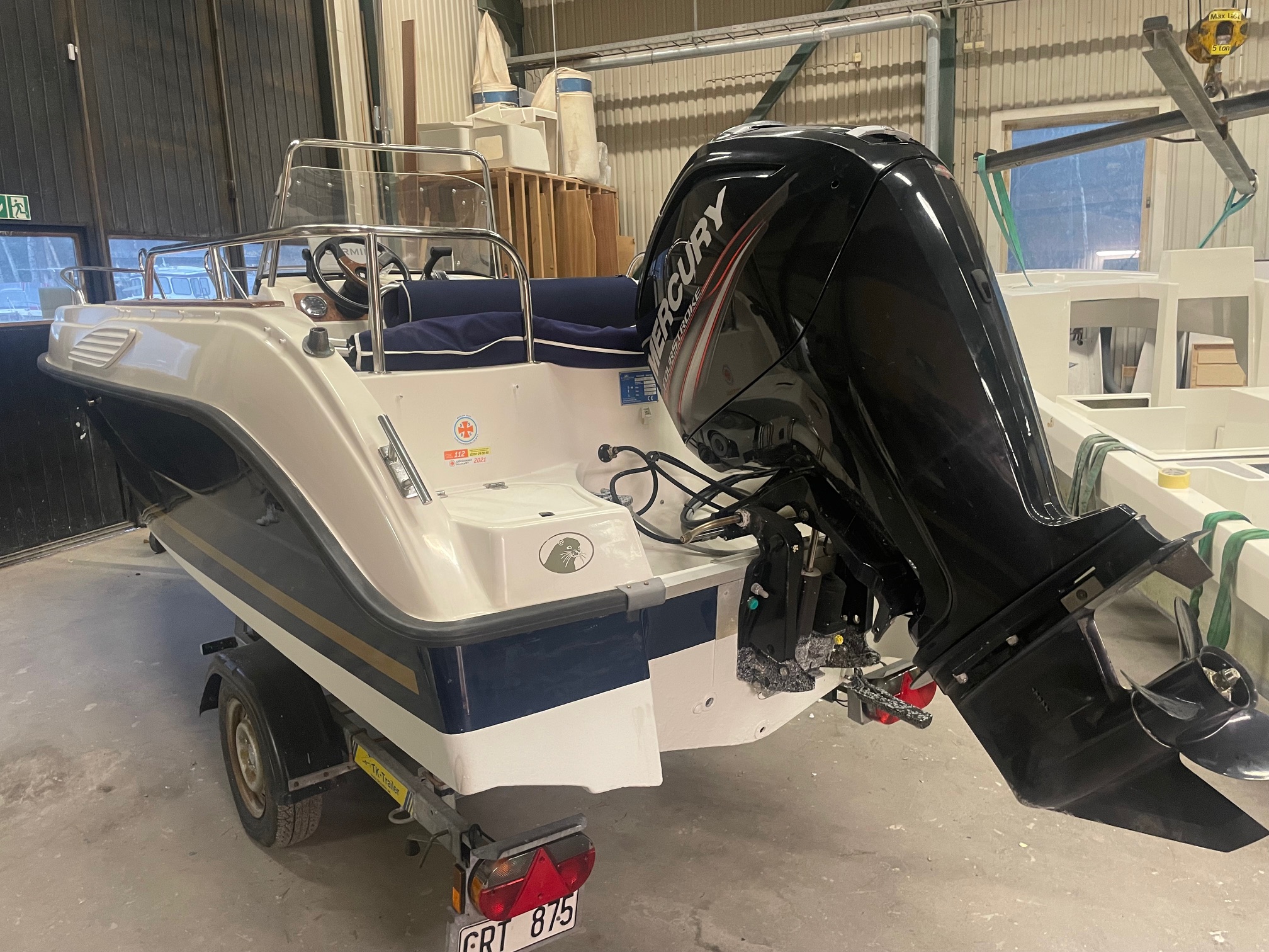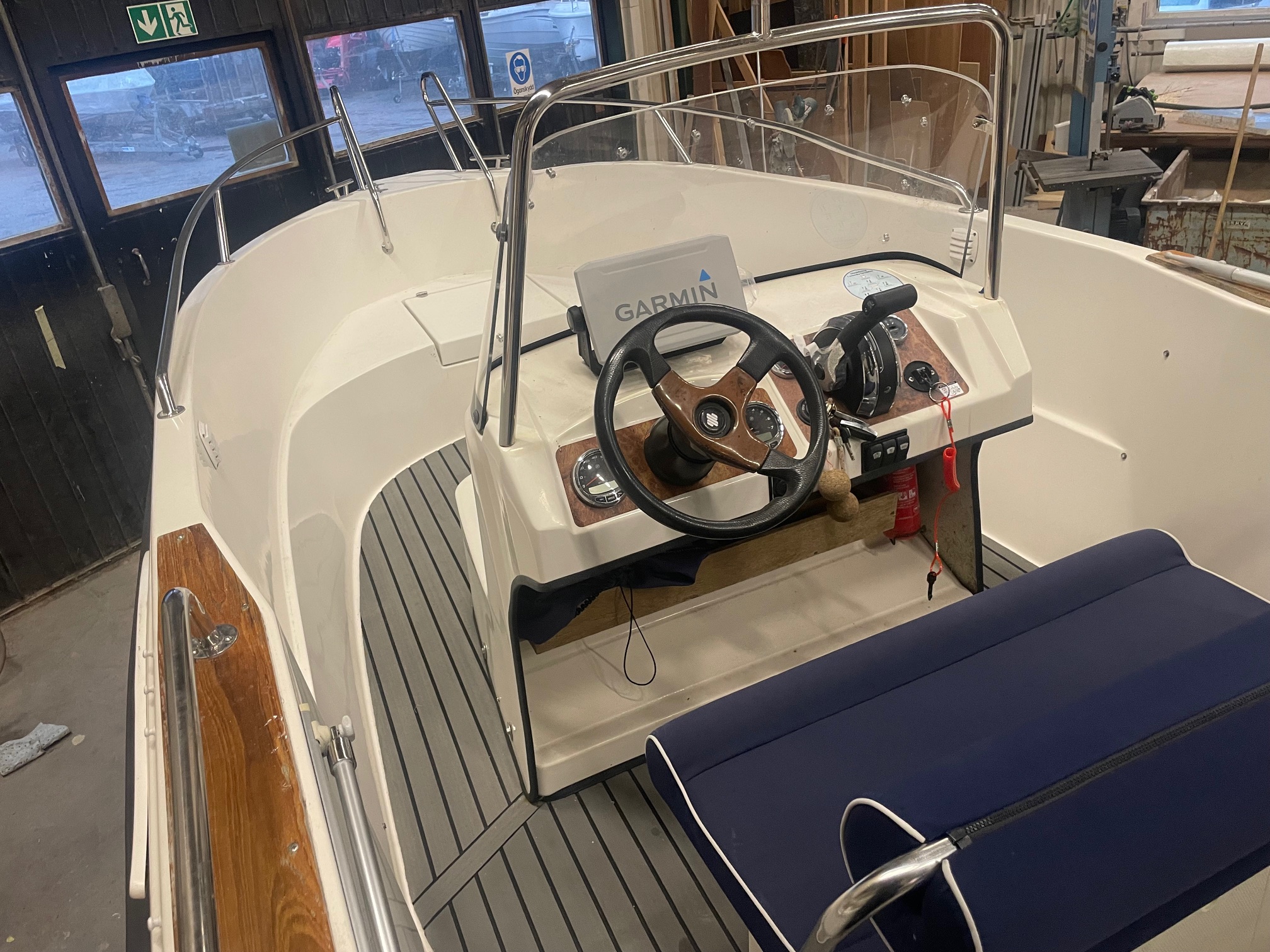 fint båtpaket som är redo för sjösättning, nyare Garmin UHD 92SV med ekolod samt sjökort för västkusten. ommålad med Double-Coat vilket minskar underhållet markant! ger ett mycket fint intryck! nyare EVA durk, överdrags kapell och komplett körkapell! allt i fint skick.